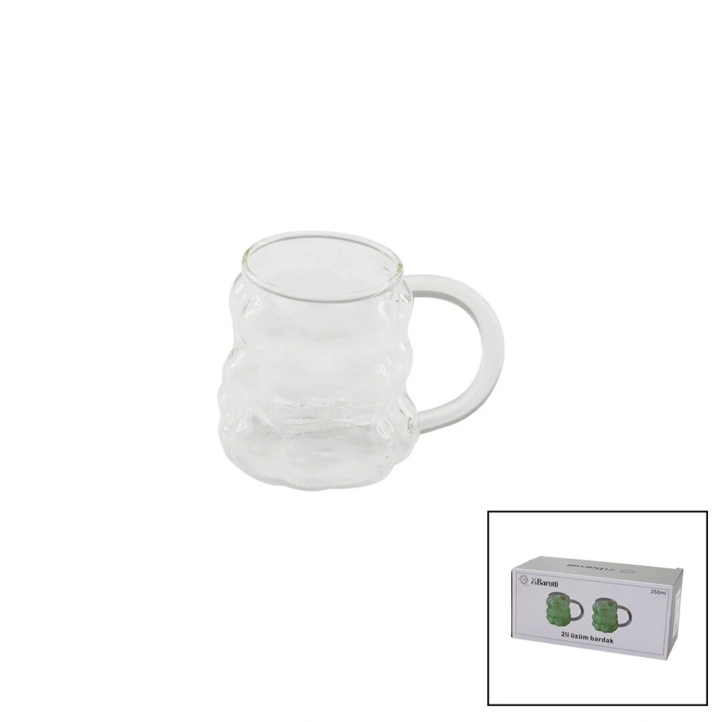 BAROTTİ DMR-8795 ( 2PCS ) (ÜZÜM & KABARCIKLI) (KULPLU) CAM BARDAK (TERMİSİL & ISIYA DAYANIKLI) (BOROSİLİKAT)(350ML)*40
