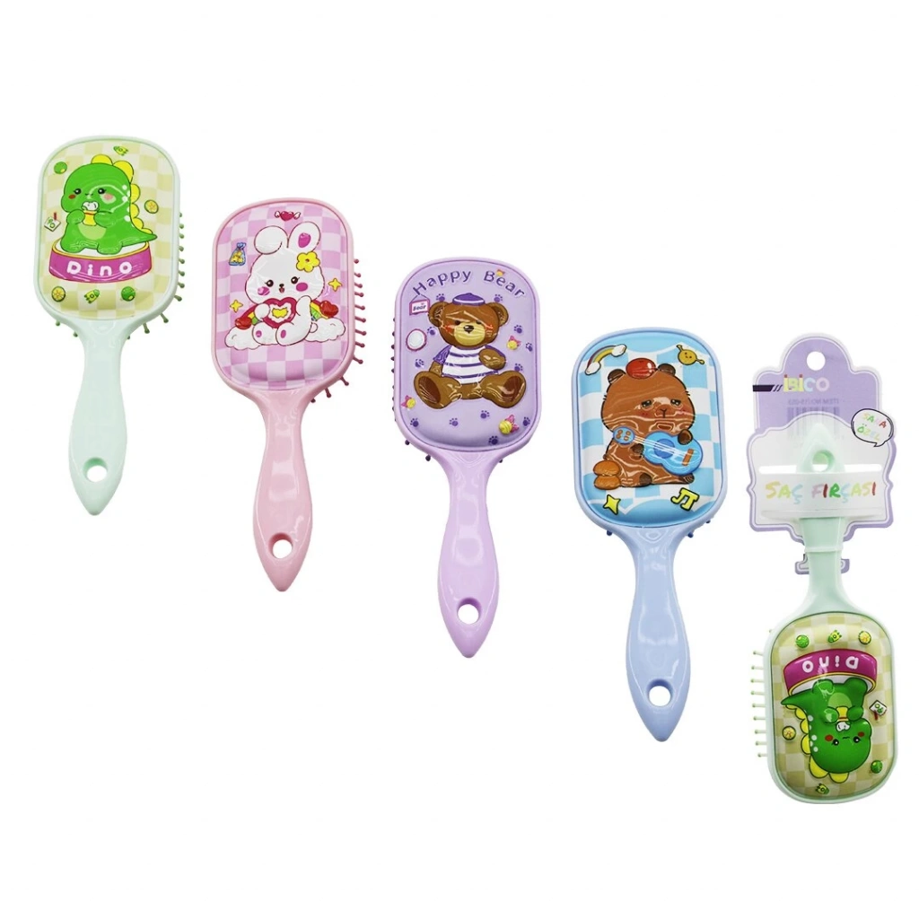 İBİCO İ15-053 (DİKDÖRTGEN) (SİLİKON KABARTMA HAYVAN FİGÜRLÜ) ÇOCUK SAÇ FIRÇASI=PLASTİK & TARAK ( RENKLİ PLS.SAP)*12X20
