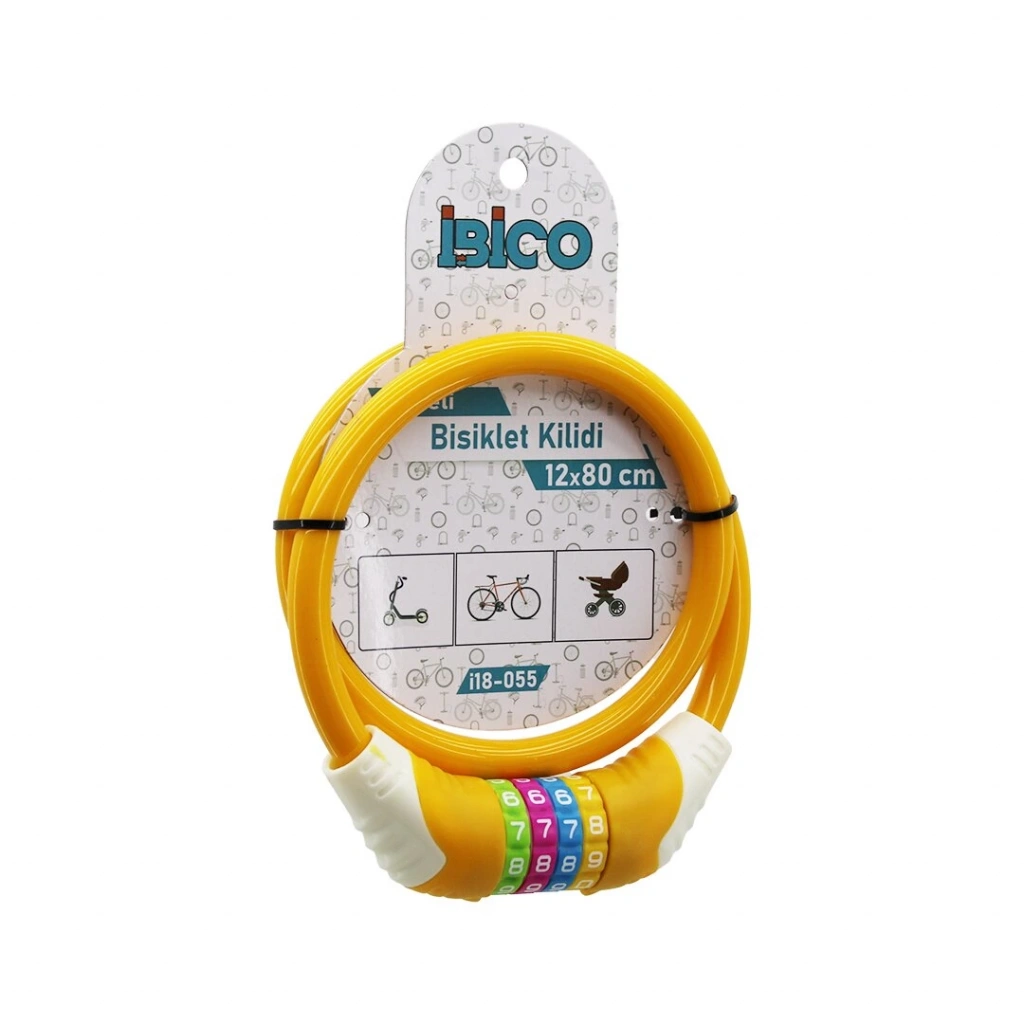 İBİCO İ18-055 ( ŞİFRELİ ) ( KALIN ) BİSİKLET KİLİT ( ÇELİK TEL ) ( TURUNCU RENKLİ KILIF ) ( 12MMX80CM )*120