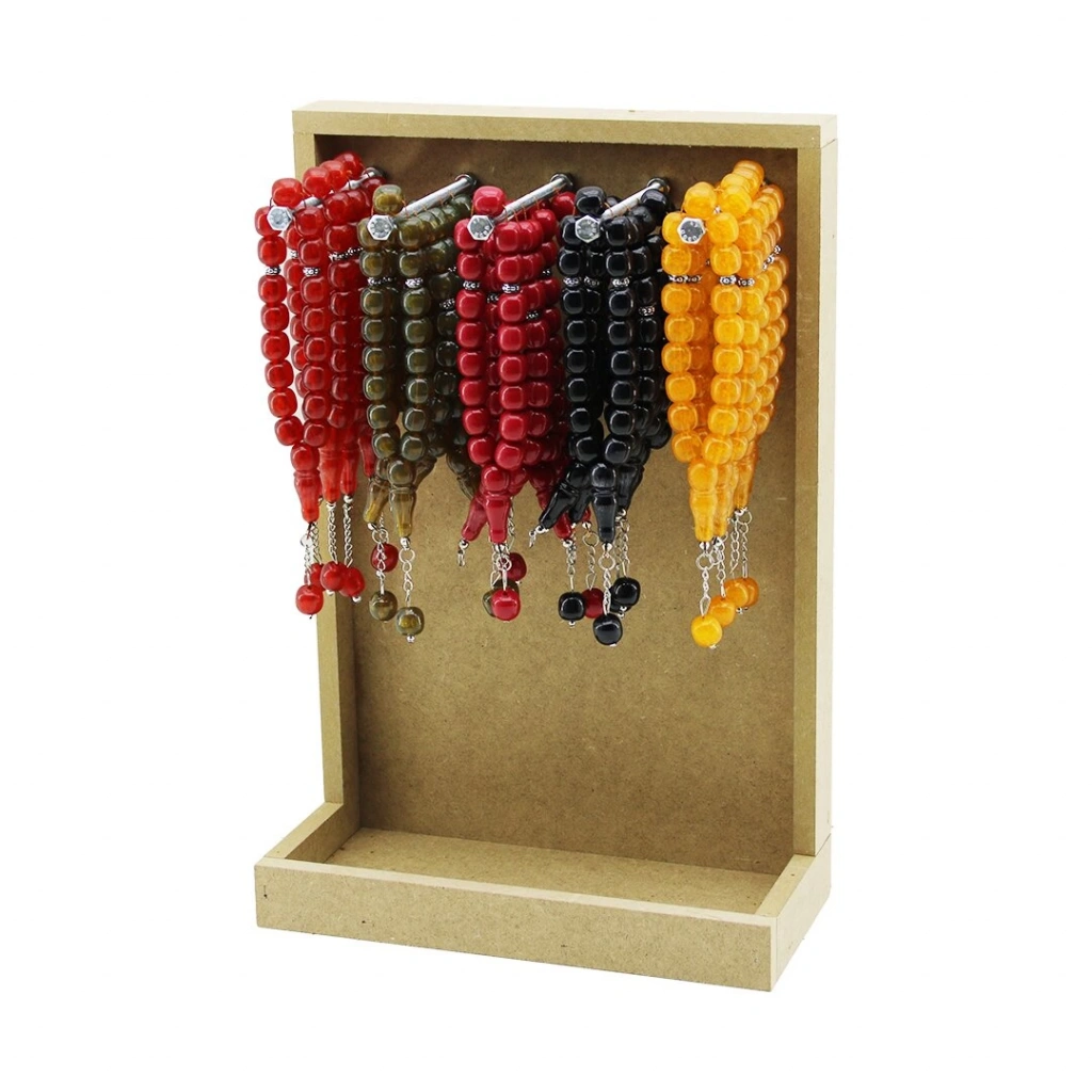 MEVA M-65 ( BÜYÜK & 33LÜ & METAL SİMGE İMAMELİ ) ( AKRİLİK ) CEP TESBİH ( AHŞAP STANDLI ) ( LASTİKLİ MİSİNA İPLİ )*60X10