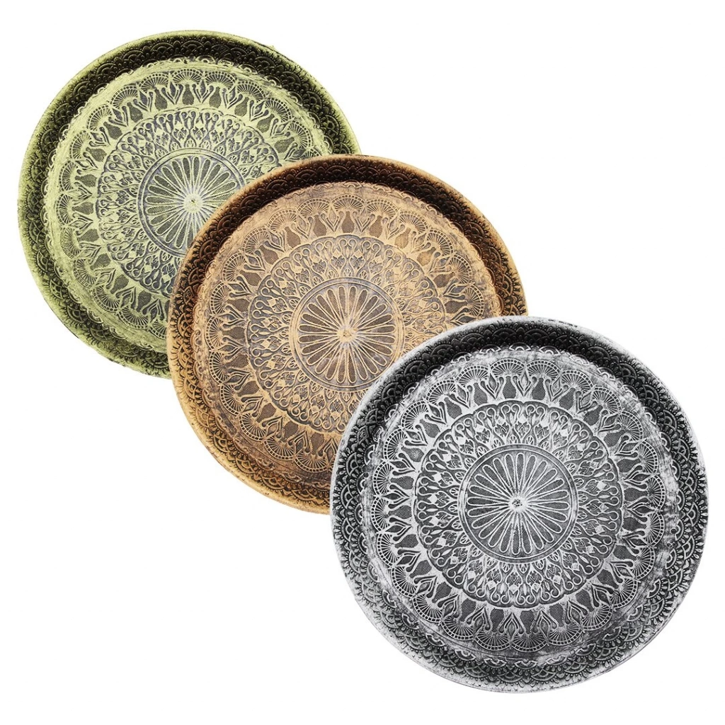 İBİCO ( YUVARLAK ) ( ESKİTME YALDIZLI ) PLASTİK ( ANTİK TEPSİ ) ( SARI & GÜMÜŞ & BAKIR )*50