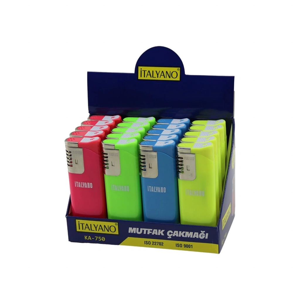 İTALYANO KA-750 ( FOSFORLU RENKLER ) ( DEV BOY=3.7 X 11.2CM ) ( FENERLİ ) ( IZGARALI & RÜZGAR ) MUTFAK ÇAKMAK*20X16