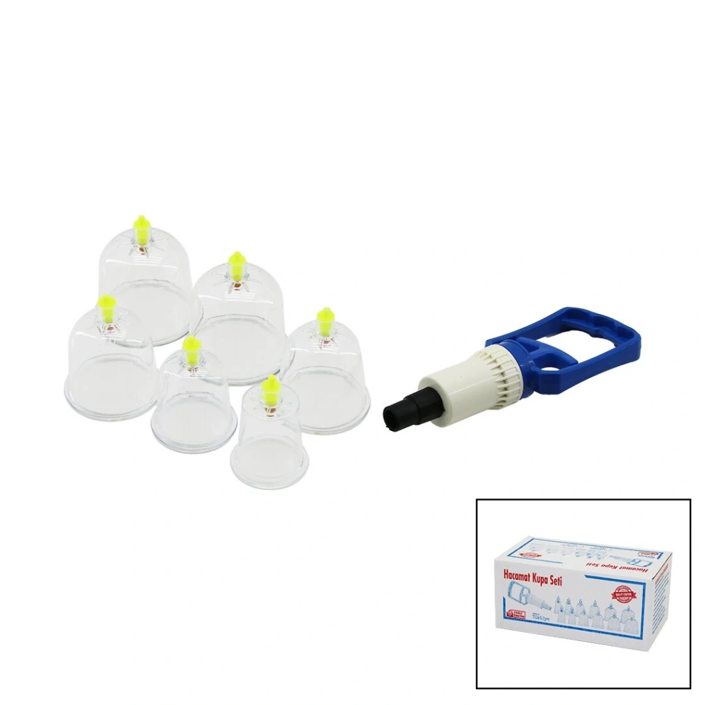 KRT-1012 ( 6PCS ) HACAMAT KUPA MASAJ SETİ ( POMPA: 1AD + NO-7: 2AD & NO-6: 2AD & NO-5: 1AD & NO-4: 1AD ) MİKA KRİSTAL PLS.*38