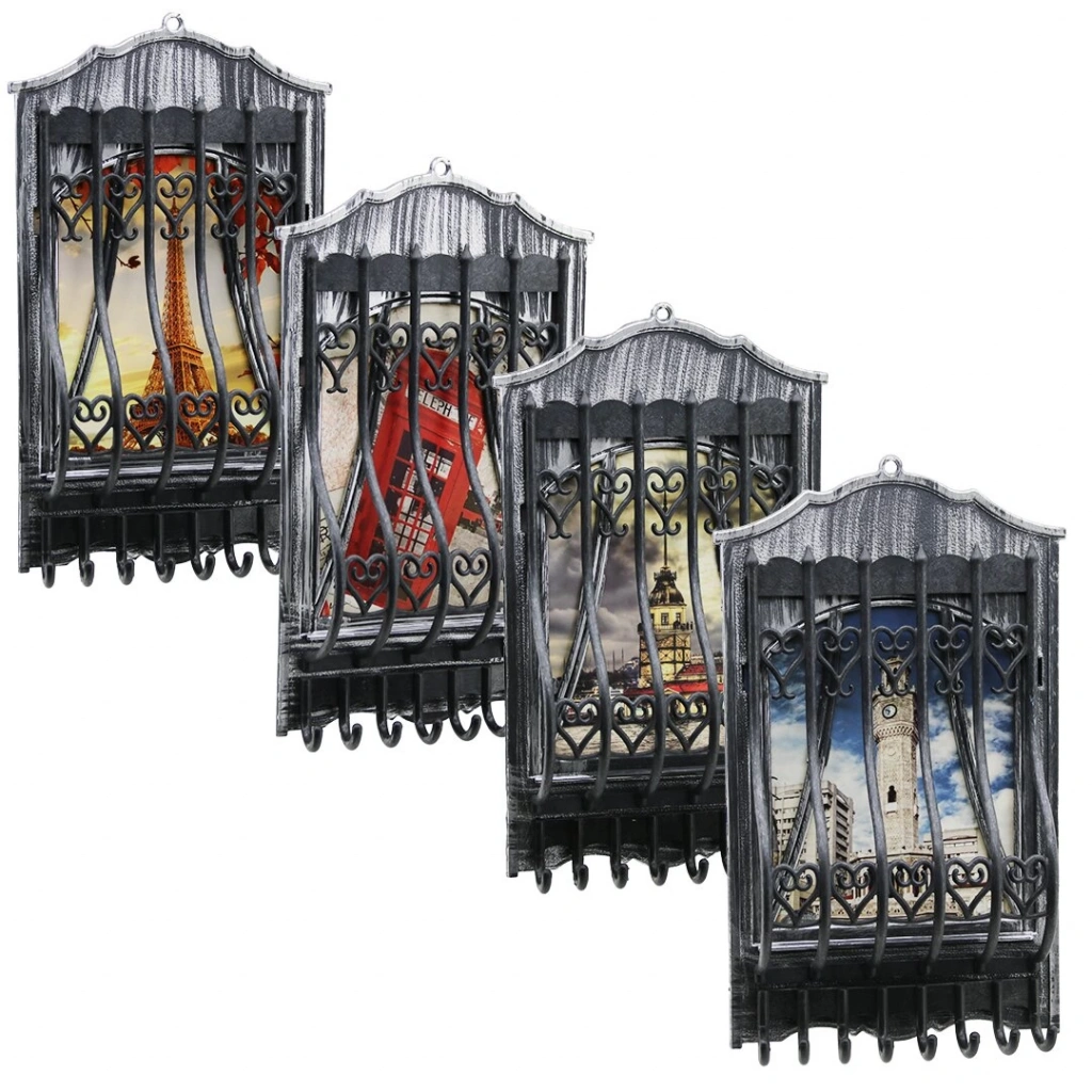 MİZAN M-11332 ANAHTARLIK ASKISI ( PENCERE KORKULUK MODEL ) ( PLASTİK & GRİ ESKİTME DESEN )*24=K