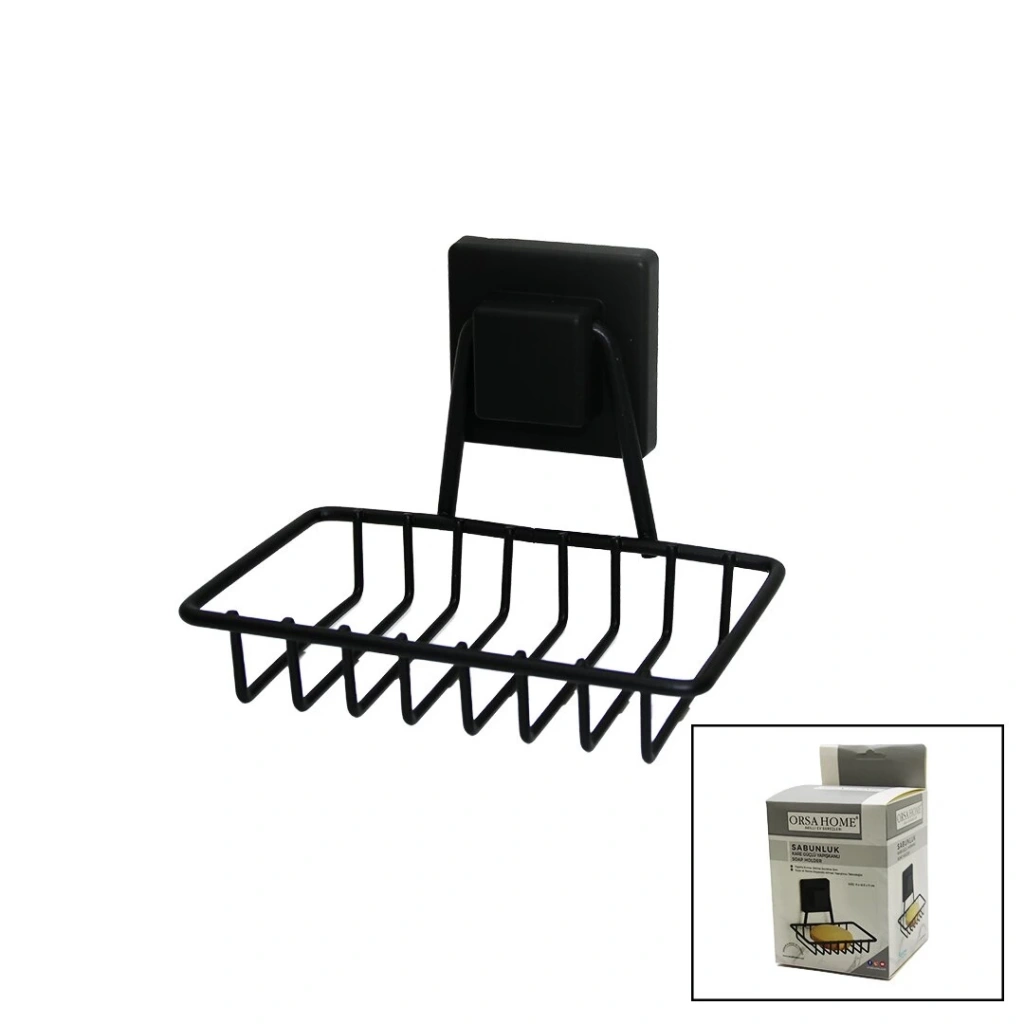 ORSA-905 ( SİYAH & METAL ) KATI SABUNLUK ( KARE GÜÇLÜ YAPIŞKANLI ) ( 11X12.5X11CM )*6