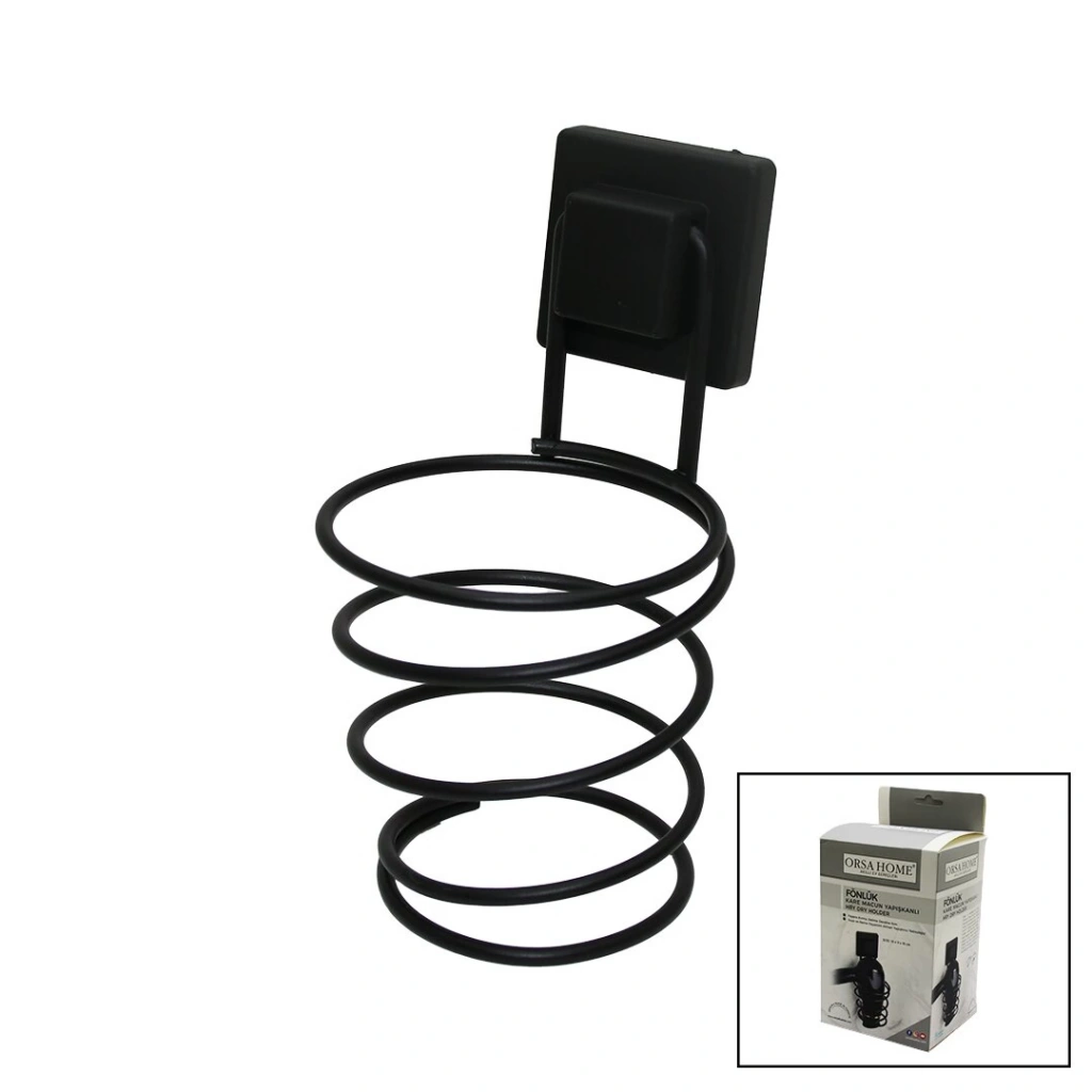 ORSA-915 ( SİYAH & METAL ) FÖNLÜK FÖN MAKİNE ASKISI ( KARE MACUN YAPIŞKANLI ) (10X11X15CM)*6