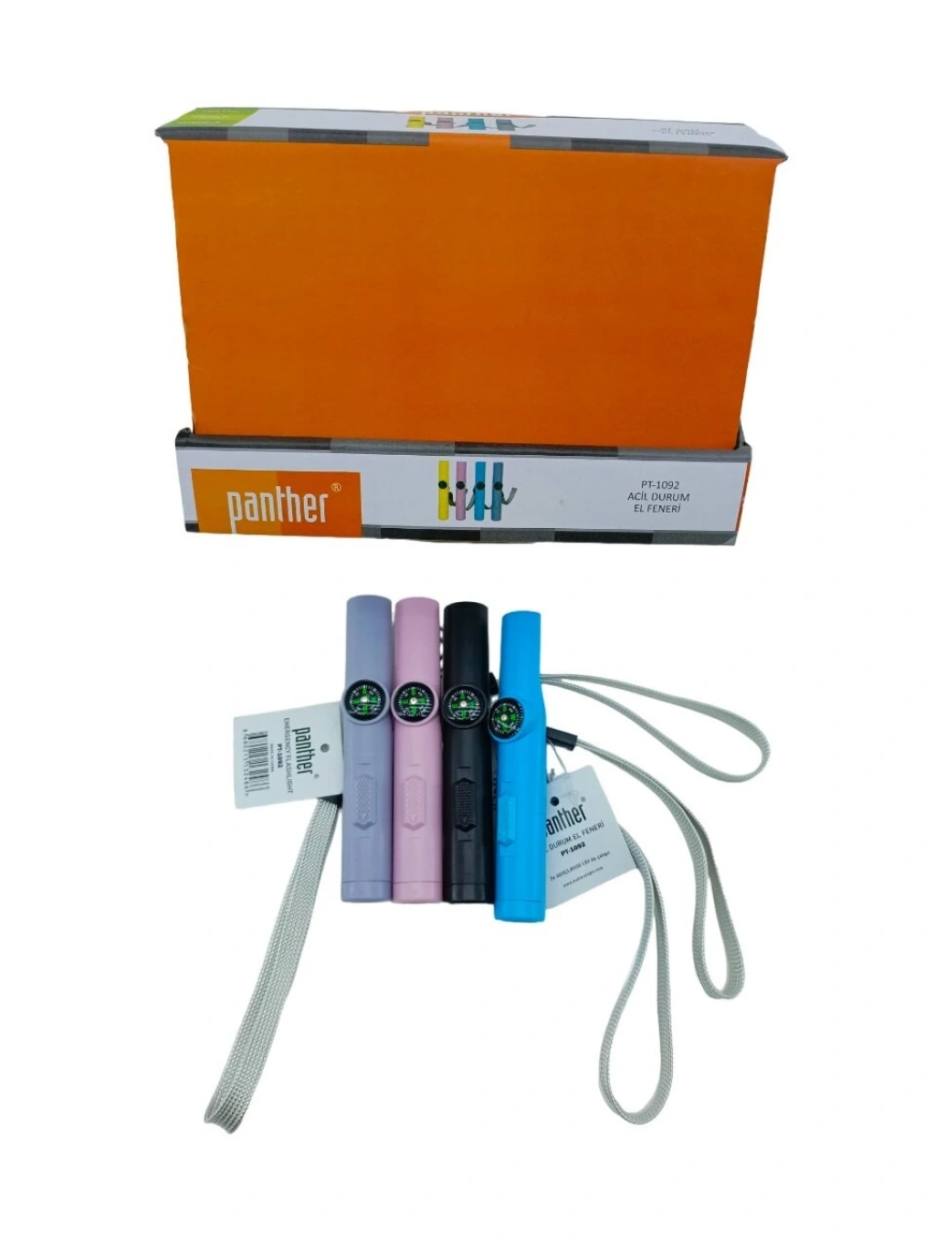 PANTHER PT-1092 (3İN1) DEPREM & ACİL DURUM EL FENERİ LAZER & DÜDÜK & PUSULA (RENKLİ PLS.& BİLEK ASKI İPLİ)*24X25 qwe001