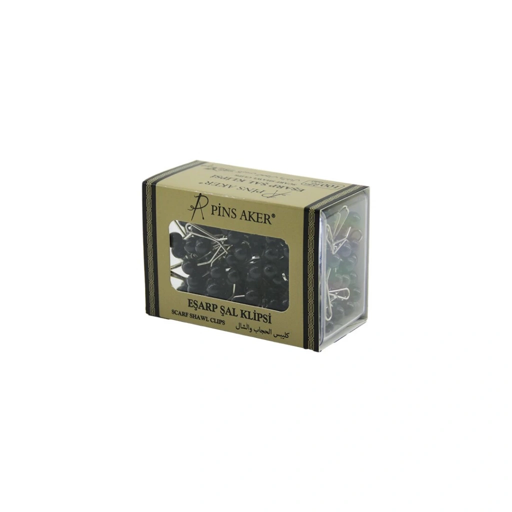 PİNS AKER ( ŞK-100 ) SCARF SHAWL ( BONCUKLU ) ( SİYAH ) ( 100PCS ) EŞARP BAŞÖRTÜ & ŞAL KLİPSİ*50