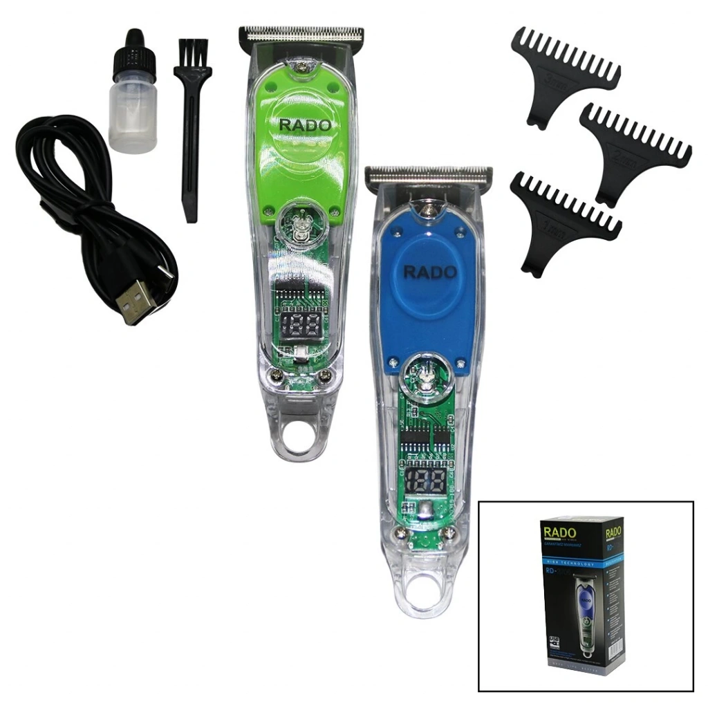 RADO RD-3706 ( ŞEFFAF GÖVDE ) ( 2 KADEMELİ TURBO & LED GÖSTERGELİ ) USB ŞARJLI SAÇ SAKAL TRAŞ MAKİNESİ*60