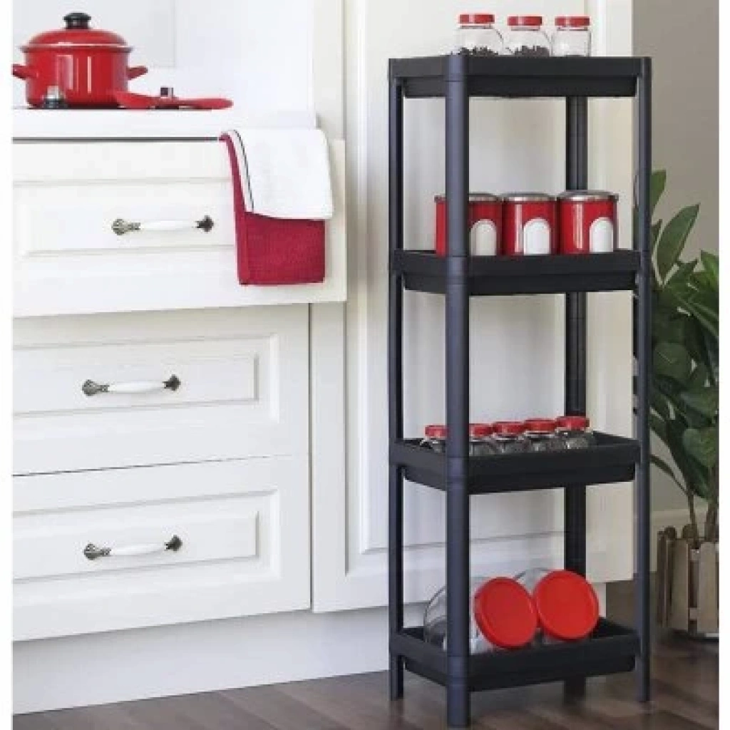 SHELF UNİT MAGGİE OM-1016-0053 ( 4 ( ÇUKUR ) RAFLI ) & SİYAH ) ( DİKDÖRTGEN ) RAF ÜNİTESİ PLASTİK*6