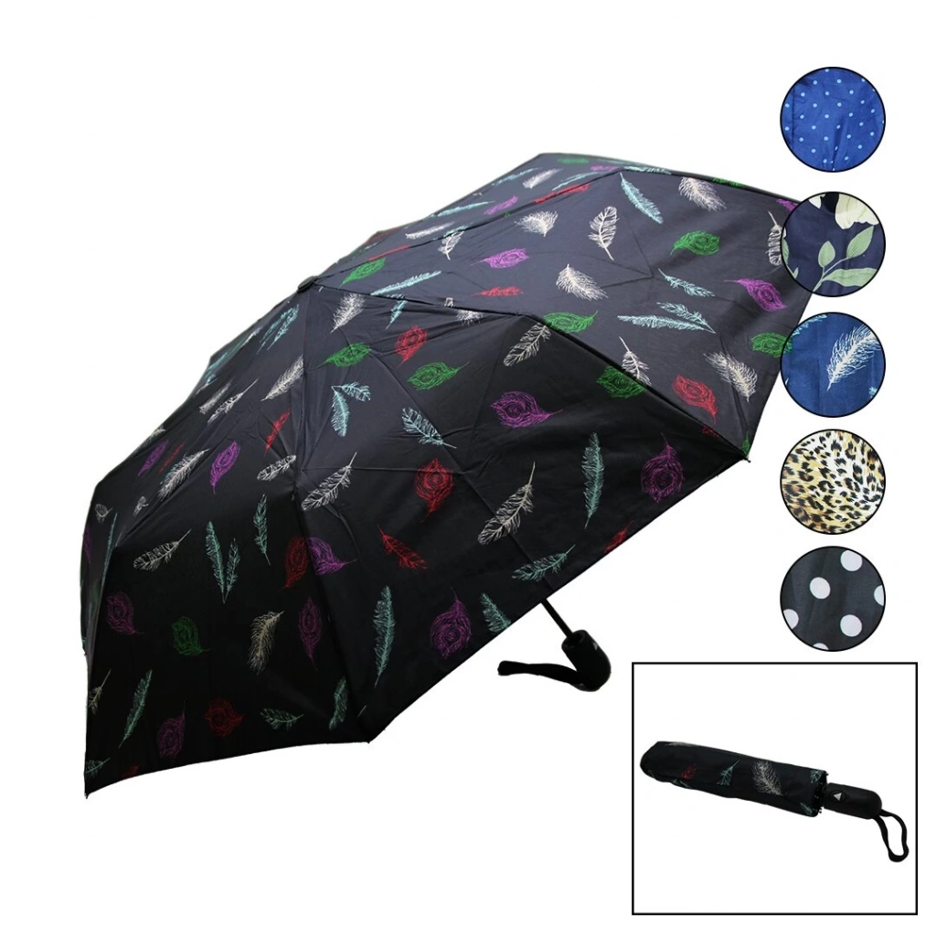 RUBENİS RB-069L ( BAYAN & YARI OTOMATİK ) (10 TELLİ ) ( 3 KIRMALI ) RENKLİ DESENLİ ŞEMSİYE (SİYAH KISA SAP)*12X4 qwe05